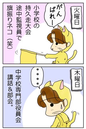 応援もここで。爆発もここで。今日は三者面談でネコかぶりました。