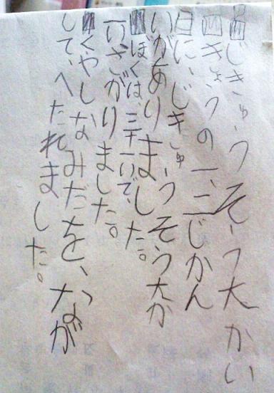 今日の次男の日記の下書きをちらっと。