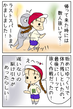 そのあと数人追い越して、後ろから数人目に。